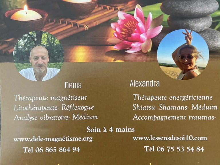 En 2025, un partenariat est né avec Alexandra thérpeute et représentante de l'essensdesoi10; Alexandra d'un héritage familial et ancestral depuis son plus jeune âge est une femme chamane. Egalement médium énergéticienne, Alexandra pratique le shiatsu, Elle intervient également sur les soins animaliers ( chevaux ). Elle exerce en son cabinet ou au domicile de la personne.